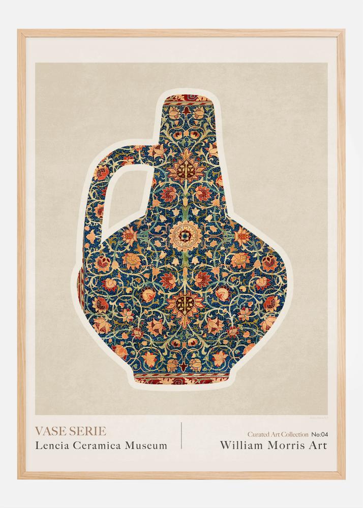 Този плакат, който е номер 04 в "Curated Art Collection" от музея Lencia Ceramica, е богат и комплексен трибут към Уилям Морис и неговия значителен принос към изкуството на моделите. Тук се представя стилна ваза, покрита с детайлен и цветен модел, който излъчва викторианската епоха с очарование към ориенталското и средновековното изкуство, стил който Морис помогна да се популяризира.