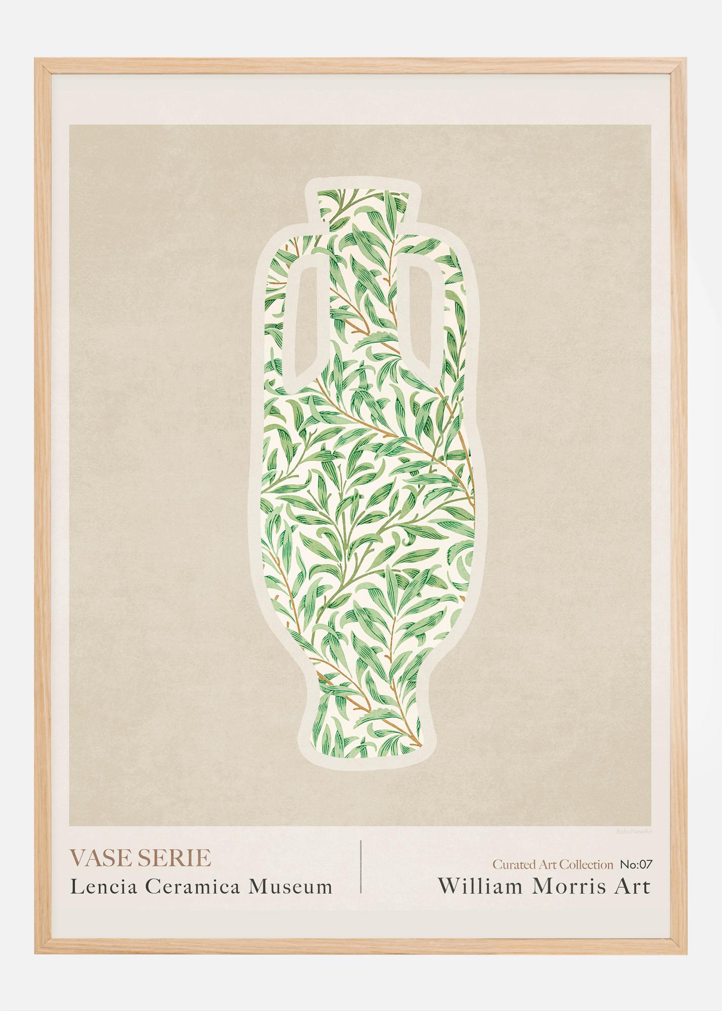 Този деликатен и вдъхновен от природата постер е номер 07 в нашата "Кураторска колекция от изкуство" от Lencia Ceramica Museum, която празнува художественото наследство на Уилям Морис. Той изобразява класическа силуета на вазa, изпълнена с едно от отличителните зелени растителни мотиви на Морис, което показва неговия майсторски начин на комбиниране на форма и функция с естетическа красота в дизайна. Това е вечен поклон към визията на Морис и неговата способност да черпи вдъхновение от природата и да я превръща в изкуство.
