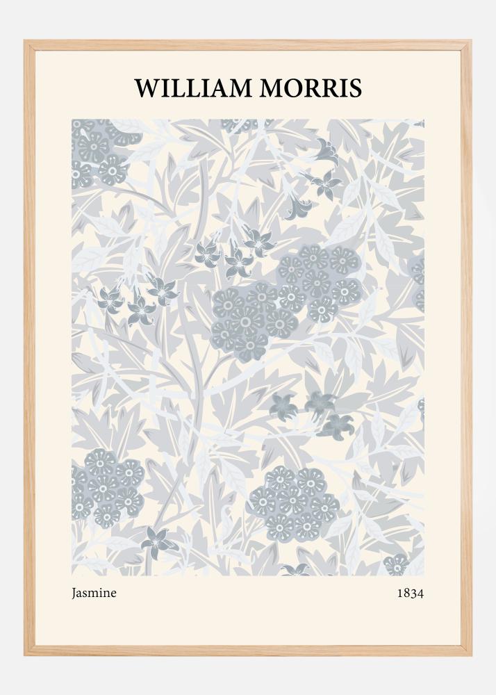 Този елегантен и успокояващ плакат от Уилям Морис, озаглавен "Жасмин", излъчва усещане за спокойствие и чистота. Моделът е изпъстрен с нюанси, представляващи цъфтяща градина, с жасминови цветове и листа в нюанси на бледо синьо и сиво, красиво разположени на ясен и успокояващ кремав фон. Тази щампа е почит към любовта на Морис към природата и неговата способност да улавя нейната красота в своите модели.