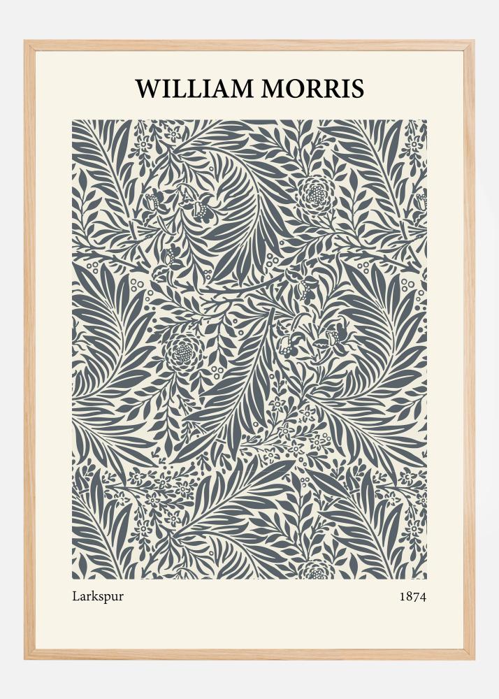 Този плакат на Уилям Морис от 1874 г., озаглавен "Delphinium", подчертава изящната детайлност и органичната красота, характерни за дизайна на Морис. Мотивът, който цъфти със сложни цветя и листа, излъчва вечна елегантност, която допълва както традиционните, така и съвременните пространства. Дизайнът е класическо представяне на ценностите на движението Изкуства и занаяти, където ръчната изработка и природните теми са в основата.
