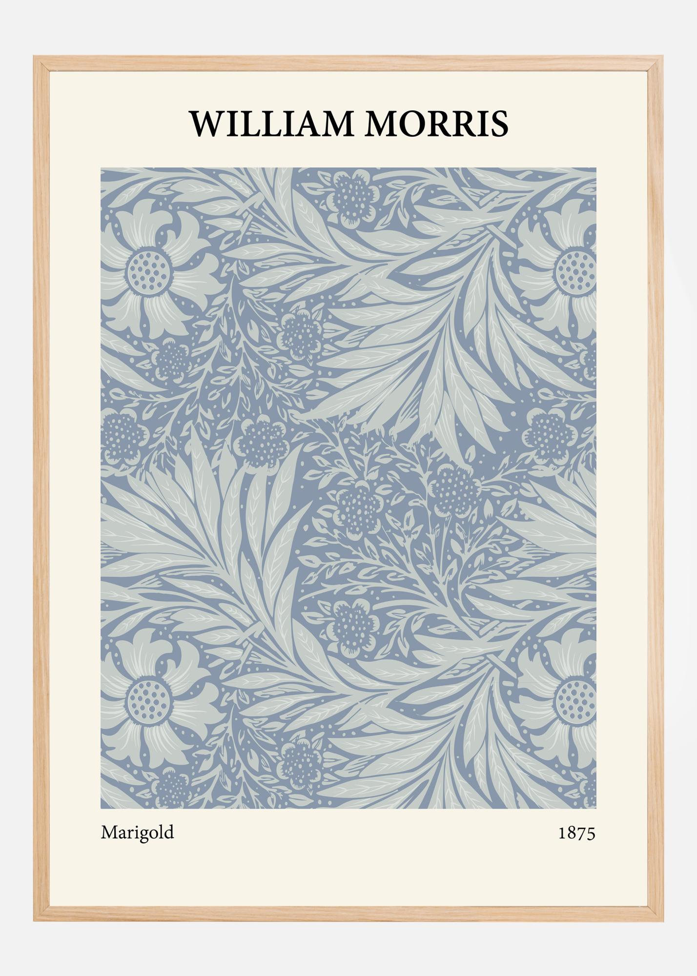 Този красиво проектиран плакат на Уилям Морис показва модела "Marigold" от 1875 г. в завладяваща синя палитра. Детайлите на модела и природният стил са доказателство за способността на Морис да създава произведения на изкуството, които възхваляват и отразяват красотата на природата. Този дизайн представя майсторството на Викторианската ера и движението "Изкуства и занаяти", което цени ръчно изработените предмети.