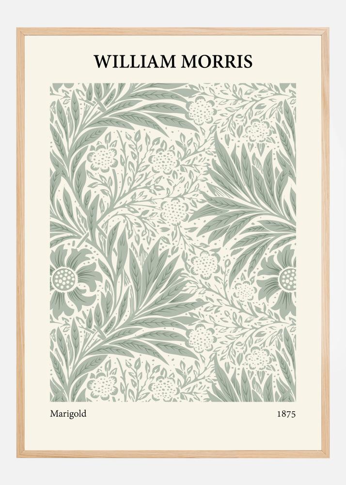 Този отличителен плакат представя дизайна "Marigold" на Уилям Морис от 1875 година, който показва богатството на мотиви, вдъхновени от природата, всички изработени с неоспоримо майсторство и внимание към детайлите. Живата, но все пак фина зелена цветова палитра е типична за дизайна на Морис и придава живот на всяко листо и венчелистче, правейки изкуството вечна интериорна класика.