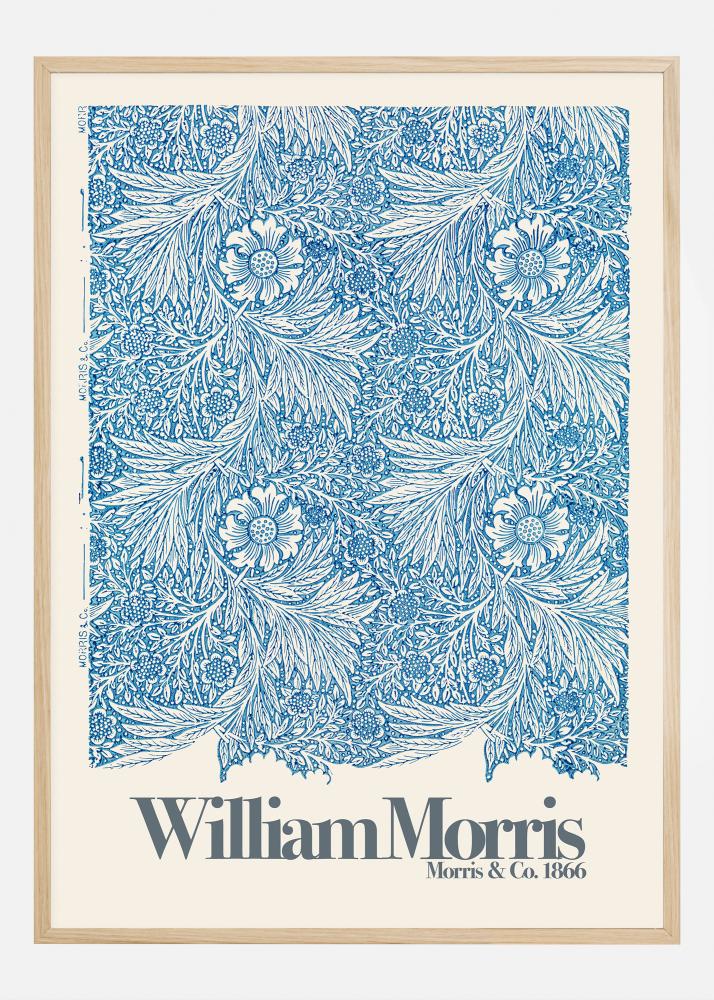 Този постер показва класически модел на Уилям Морис с името "Marigold", създаден от Morris & Co. около 1866 г. Иконичният модел, известен със своите сложни и вдъхновени от природата елементи, е изработен в дълбокосин цвят на чист, кремав фон. Всяка детайл от цветната подредба е внимателно изработена, показвайки усещането на Морис за красотата в природата и способността му да я превърне в произведения на изкуството, които са вечни и обичани и днес.