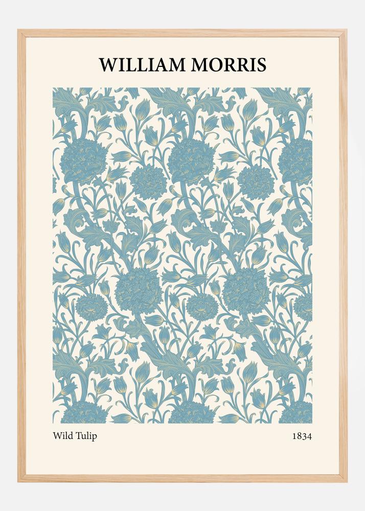 Този ексклузивен плакат на Уилям Морис, "Дива лалета", е демонстрация на иконографския стил на художника и любовта му към природата. С изискан мотив от лалета в нюанси на хладно синьо и зелено, върху кремав фон, този отпечатък пресъздава богатата текстура и детайл, с които Морис е известен. Неговият богат и жив дизайн създава впечатляващ акцент във всяка обстановка и предлага безвременна красота, характерна за произведенията на Морис.