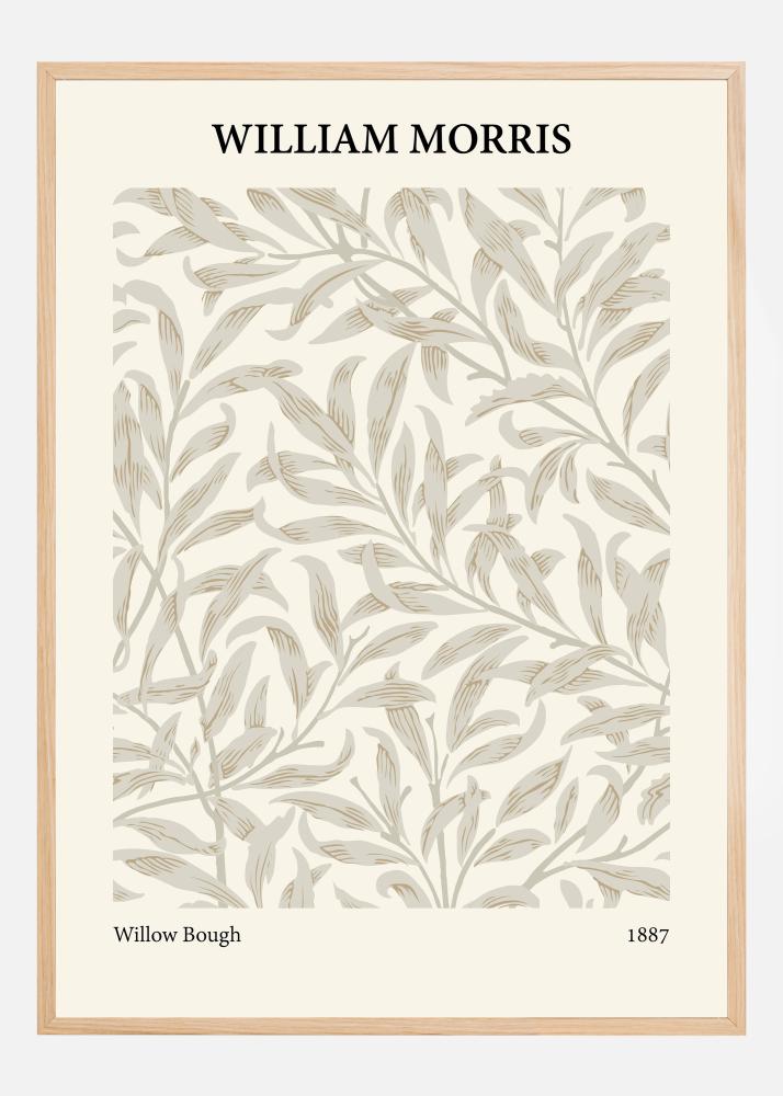 Този очарователен плакат представя емблематичния модел "Willow Bough" на Уилям Морис от 1887 година, отдавайки почит на спокойната красота на английската природа. Моделът с неговите танцуващи върбови листа е майсторско представяне на таланта на Морис да улавя движенията и формите на природата в своите произведения на изкуството. Успокояващата палитра от меки зелени и кремаво бели нюанси придава приятно и отпускащо впечатление, което напомня за мирна градина.