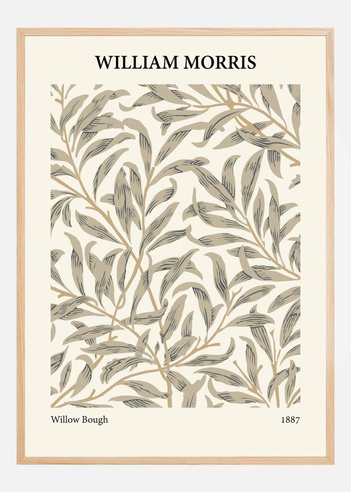 Този светъл и ефирен постер показва модела "Willow Bough" на Уилям Морис от 1887 година. Той изобразява елегантни върбови листа в нюанси на зелено и кафяво на кремав фон, отразявайки увлечението на Морис към спокойните течения на британската провинция. Дизайнът е шедьовър на движението за изкуства и занаяти и неговите мотиви, вдъхновени от природата, са също толкова актуални и сега, колкото са били в епохата на Морис.