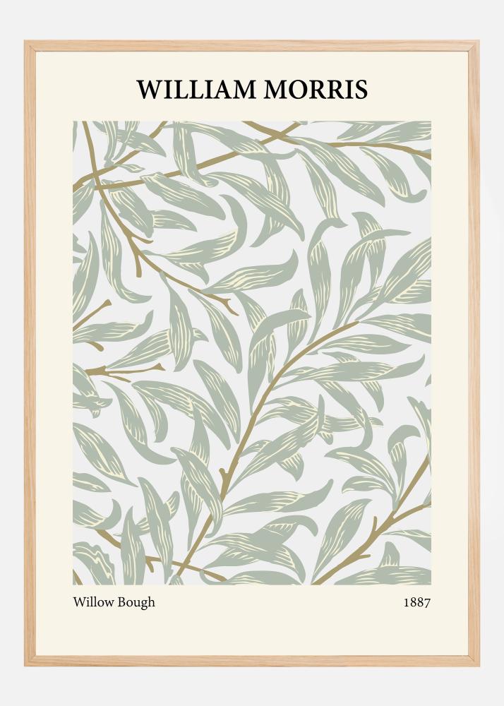 Този ярък и свеж постер показва дизайна на Уилям Морис „Върбови клони“ от 1887 г., който се характеризира с извиващи се клони и върбови листа в плавен и реалистичен модел. Успокояващата зелена цветова схема подчертава детайлните листа и създава усещане за спокойна градина и връзка с природата, което беше централно в творчеството на Морис и в движението Артс енд Крафтс като цяло.