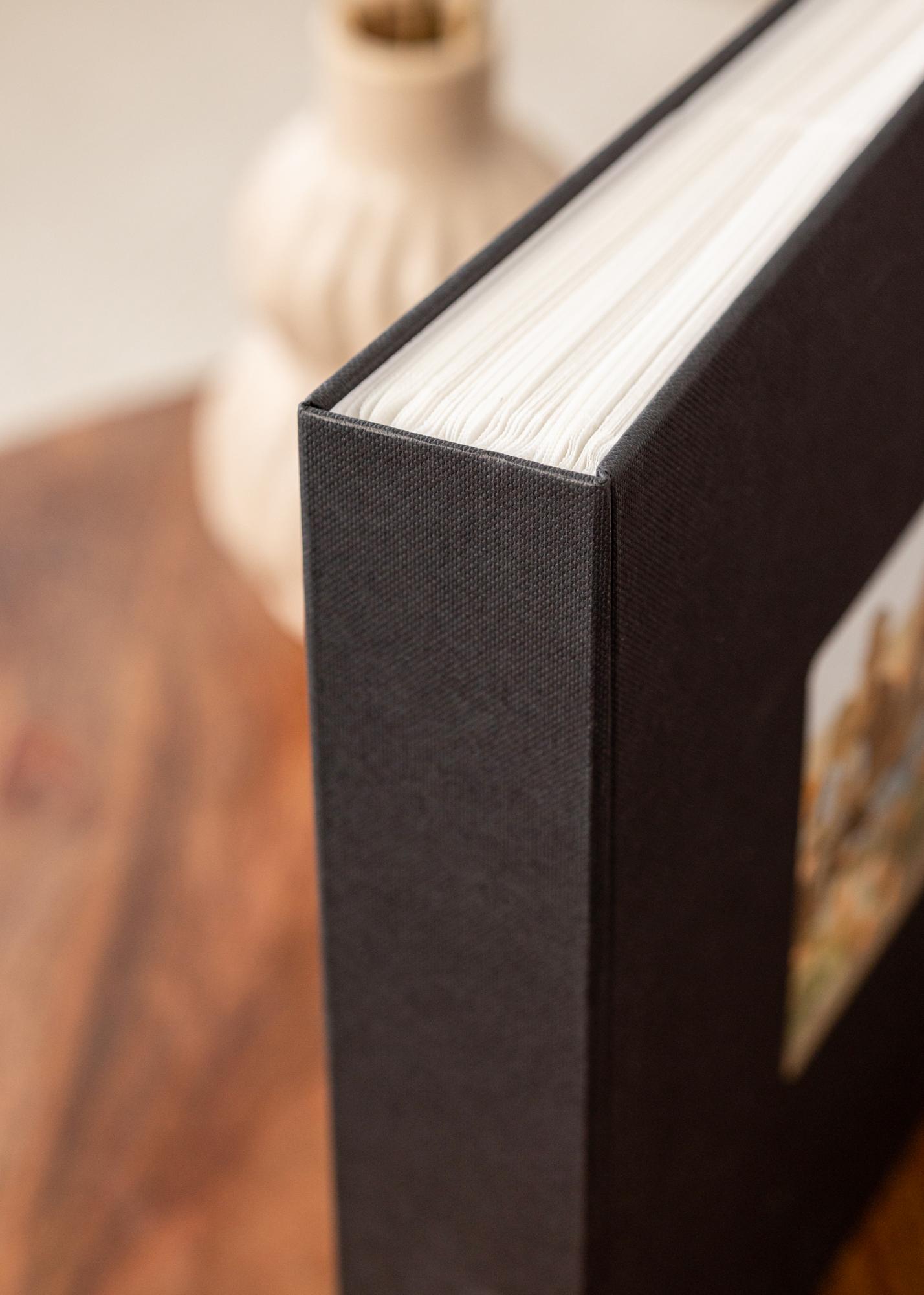 Кориците на албума са в класически черен цвят, който придава вечна и изискана визия. Белите страници вътре в албума създават красив контраст и подчертават вашите снимки по най-добрия начин. Ориентацията на снимките в албума е както пейзажна, така и портретна, което ви дава гъвкавост да аранжирате вашите снимки точно както пожелаете.