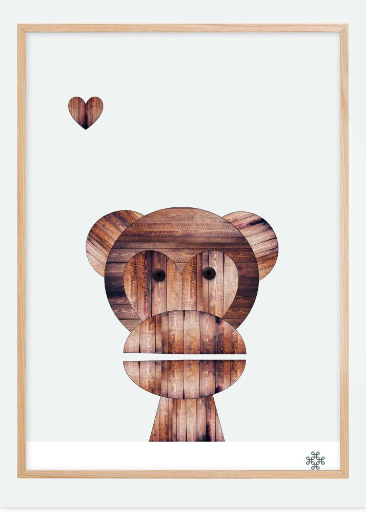 Плакат с дървени дъски, където дървото създава формата на малка маймунка. Над маймунката има малко сърце. Маймунката те гледа от картината и ти дава цялата си любов. Тази малка любовна маймунка е хитра и странна и е перфектният избор за декориране на детска спалня.