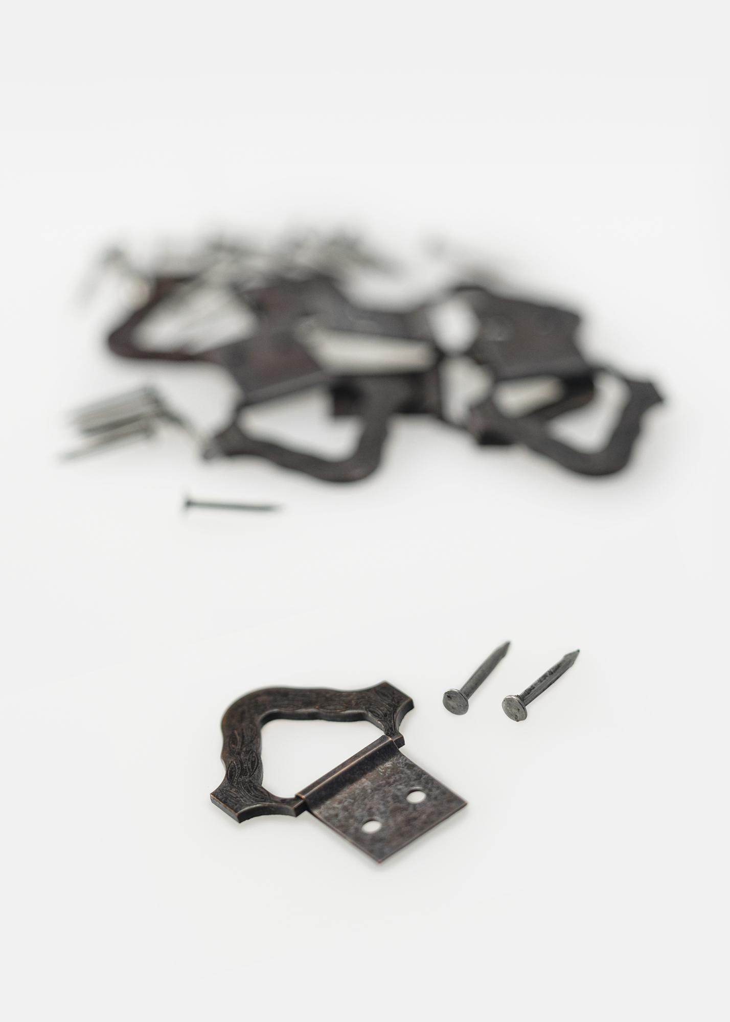 Малко по-елегантно триъгълно окачване, което се заковава на задната страна на рамката. Отлично подходящо за стари и малко по-изискани рамки. Окачването е направено, за да може да се вижда над рамката, когато я окачите. Вие избирате дали да използвате едно или две окачвания. Това е предназначено за малко по-големи рамки (максимални размери на рамката: 50x60 см).